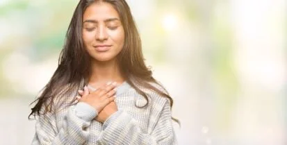 Now, put your hands over your heart, feel the warmth of your hands and the gentle touch of your hands on your chest. Or adopt the soothing touch you discovered felt right for you.
